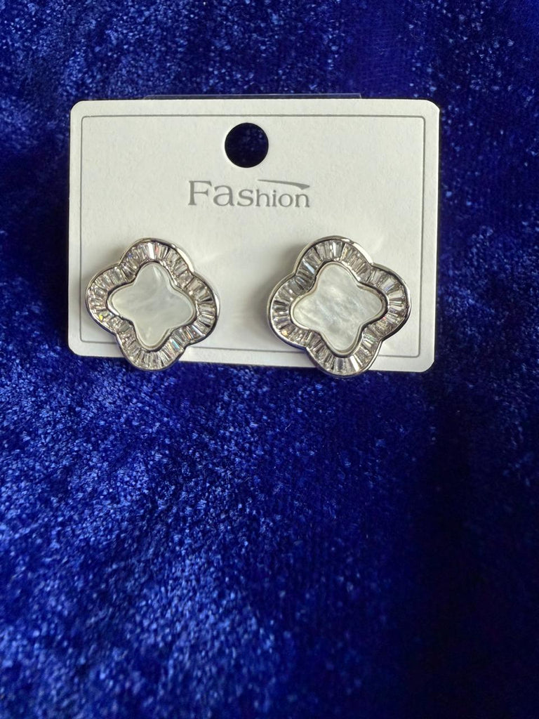 Enamel silver AD stone stud earring